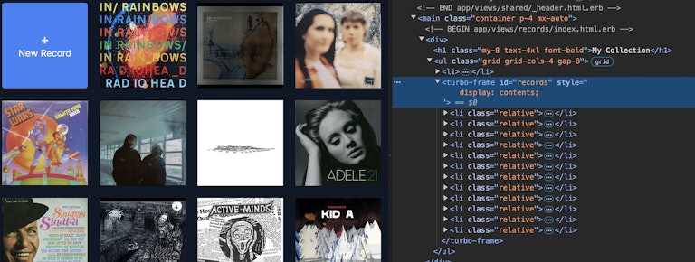 Now we want to wrap the records in a turbo frame, without including the add new record button in it.